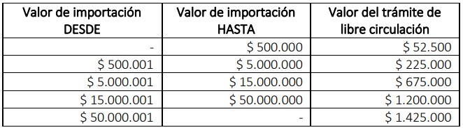 Así, si el valor de la importación era de hasta $ 500.000 el trámite para acceder a la autorización de libre circulación era de $ 52.500 y entonces por una importación de $ 50.000 el arancel significaba el 105% de la importación. Si el valor de la importación estaba entre $ 500.001 y $ 5.000.000 el trámite costaba $ 225.000.