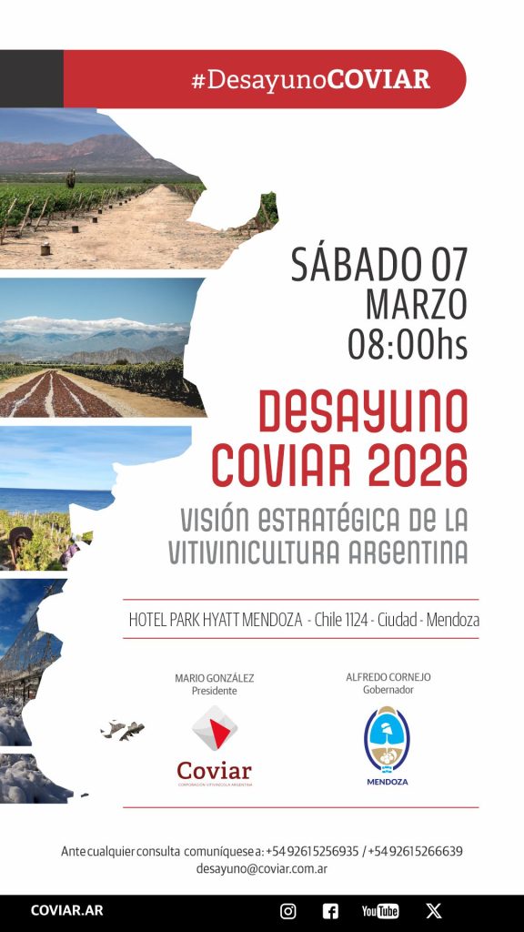 Iniciamos los preparativos para una nueva edición de la Visión Estratégica de la Vitivinicultura Argentina Desayuno de COVIAR 2026. El sábado 7 de marzo desde las 8hs tendrá lugar el encuentro anual más importante de la vitivinicultura argentina, que reúne a más de mil representantes del sector a nivel nacional, contando con la presencia de productores, bodegueros, empresarios, dirigentes y funcionarios nacionales, provinciales y municipales.